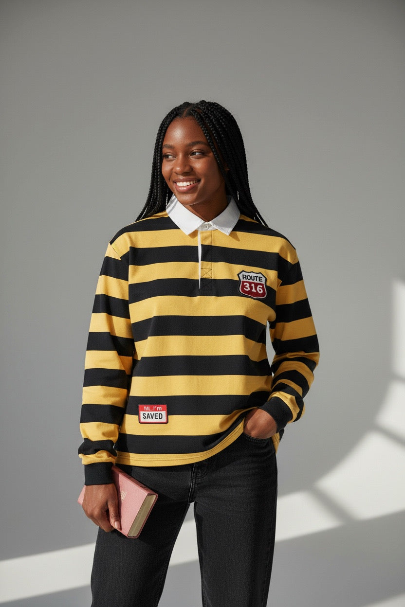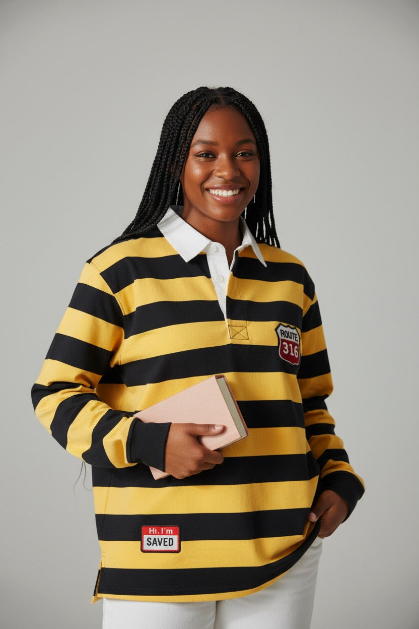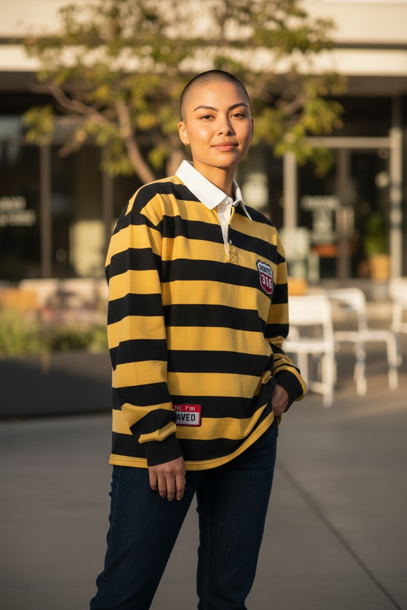 Notes:Minor batch differences can occur during blank garment production due to variations in fabric, dye and processing. This is common in apparel manufacturing, and we work hard to keep every item consistent.Stripe and collar placement may vary between garments, so design without relying on the exact position shown in the example photo.
