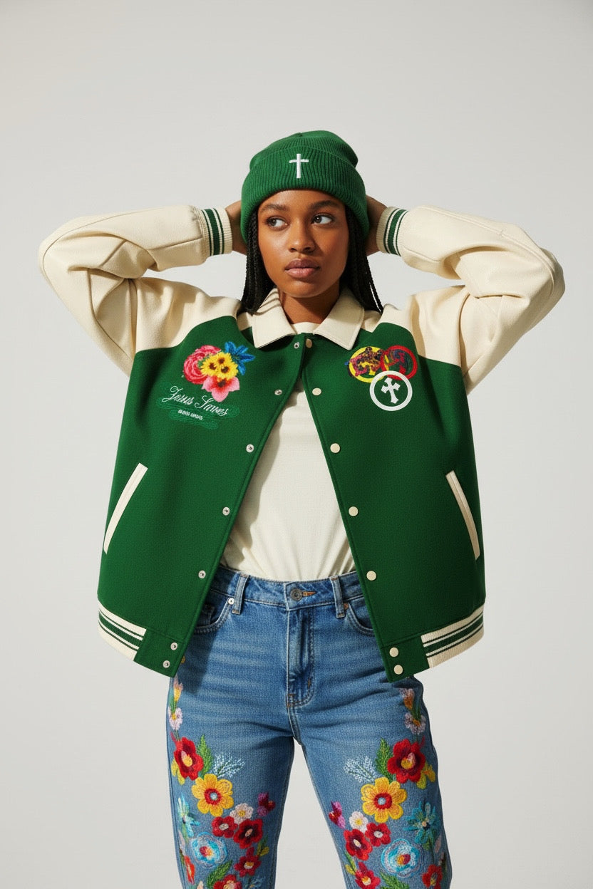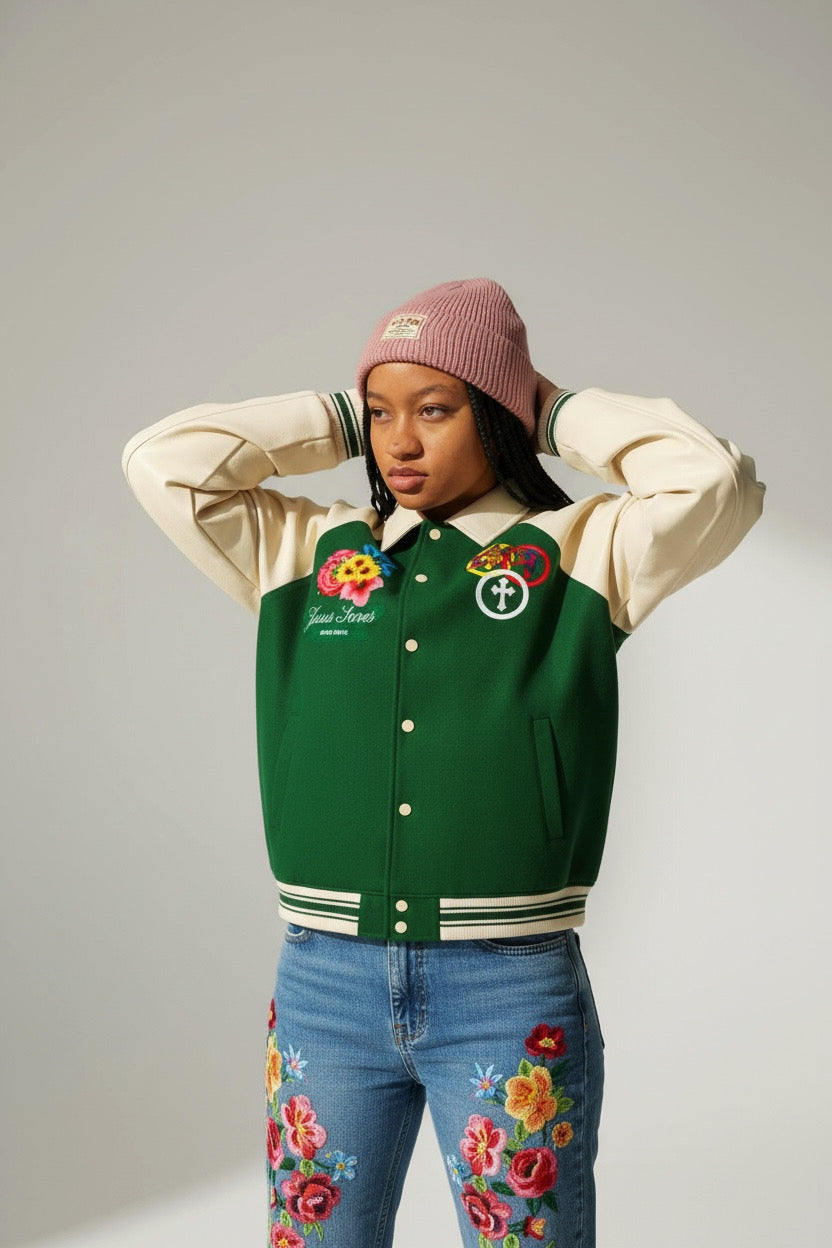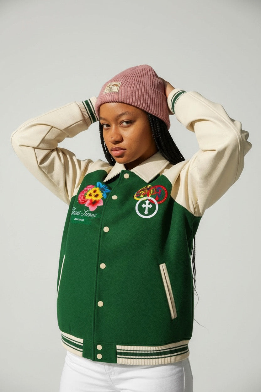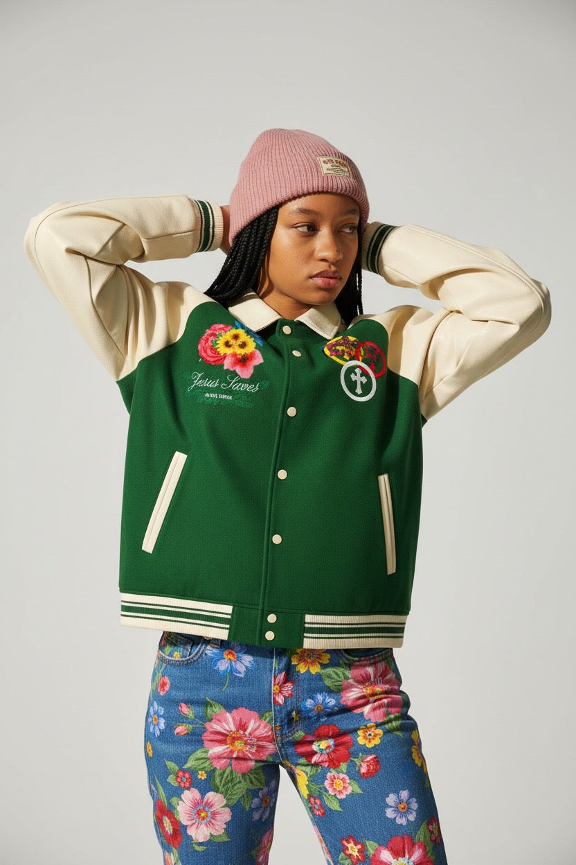 Contrast Raglan Sleeve Baseball Jacket